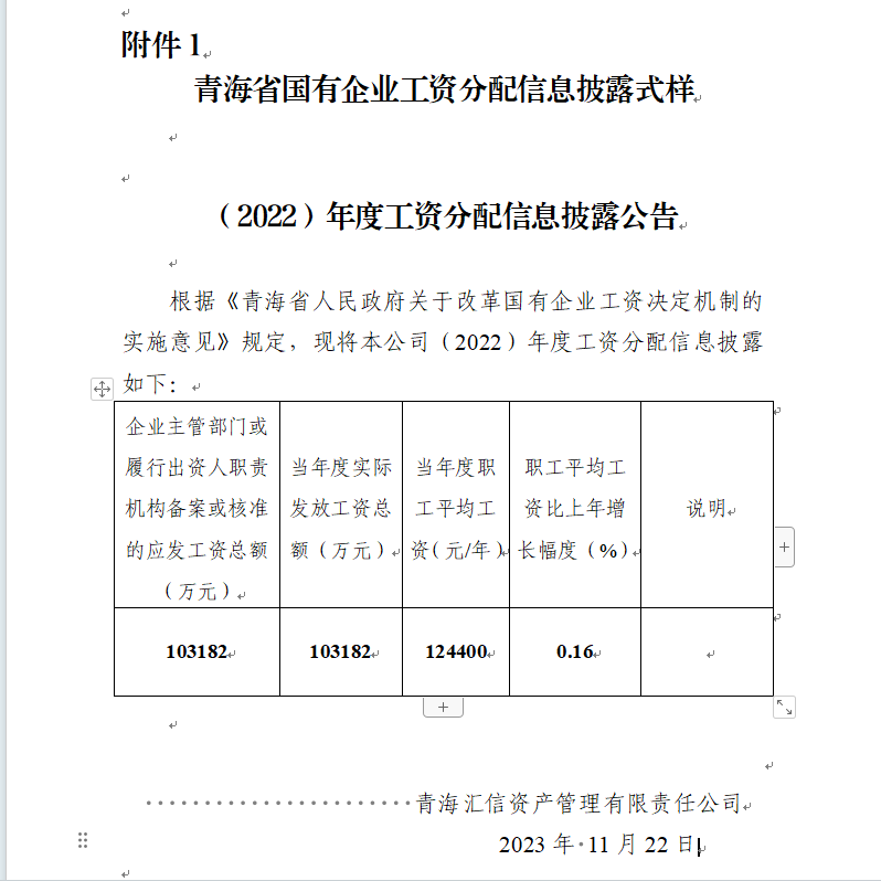(2022)年度工资分配信息披露公告